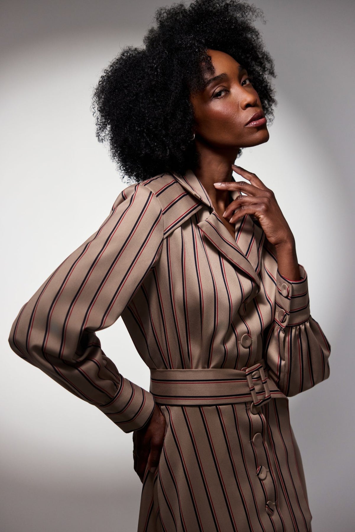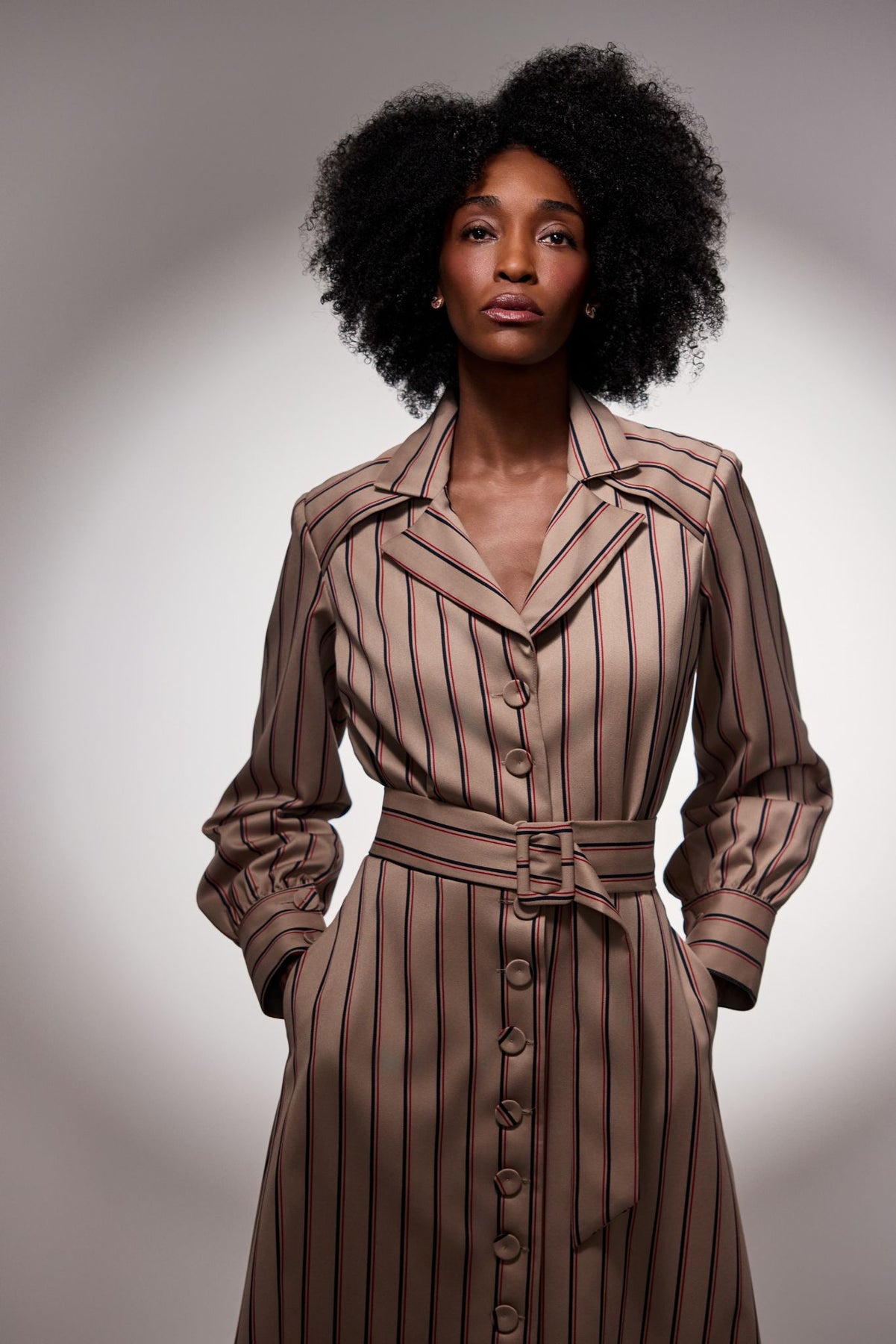 Front button-down design with covered buttons
